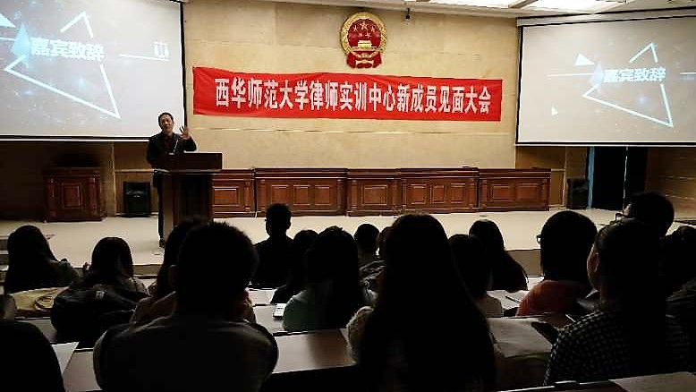 10月15日下午,雨后初晴,空气清新。四川三合律师事务所与西华师范大学法学院联合成立的律师实训中心第二批新成员见面会在法学院模拟法庭里举行。